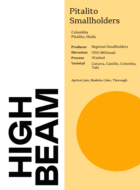 This Colombia from Pitalito, Huila is a regional blend comprised of coffee sourced from many smallholder producers that deliver to a regional collection center. The collection center is managed by our export partner Carcafe and provides a vital resource to smallholder producers that, due to the remote location and/or size of their farms, don't typically have direct access to specialty markets, which pay higher prices for coffee. Smallholder producers without direct access to markets often sell their coffee to intermediaries that pay below the market potential for the quality of coffee they are producing. Carcafe's regional collection centers bring price transparency, technical assistance and sustainability initiatives to producers in the region without the scale to access these resources on their own.